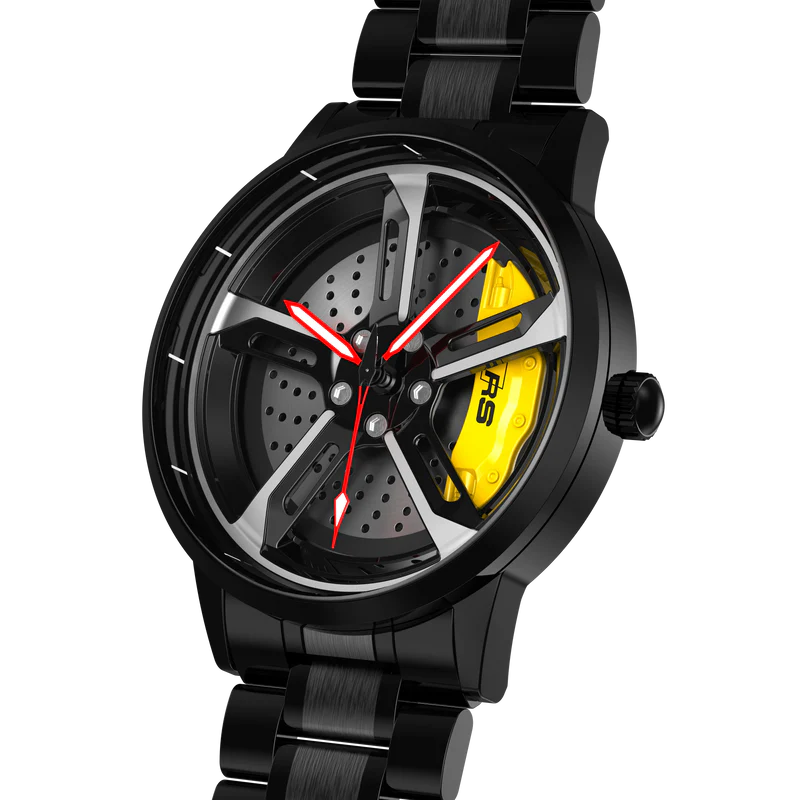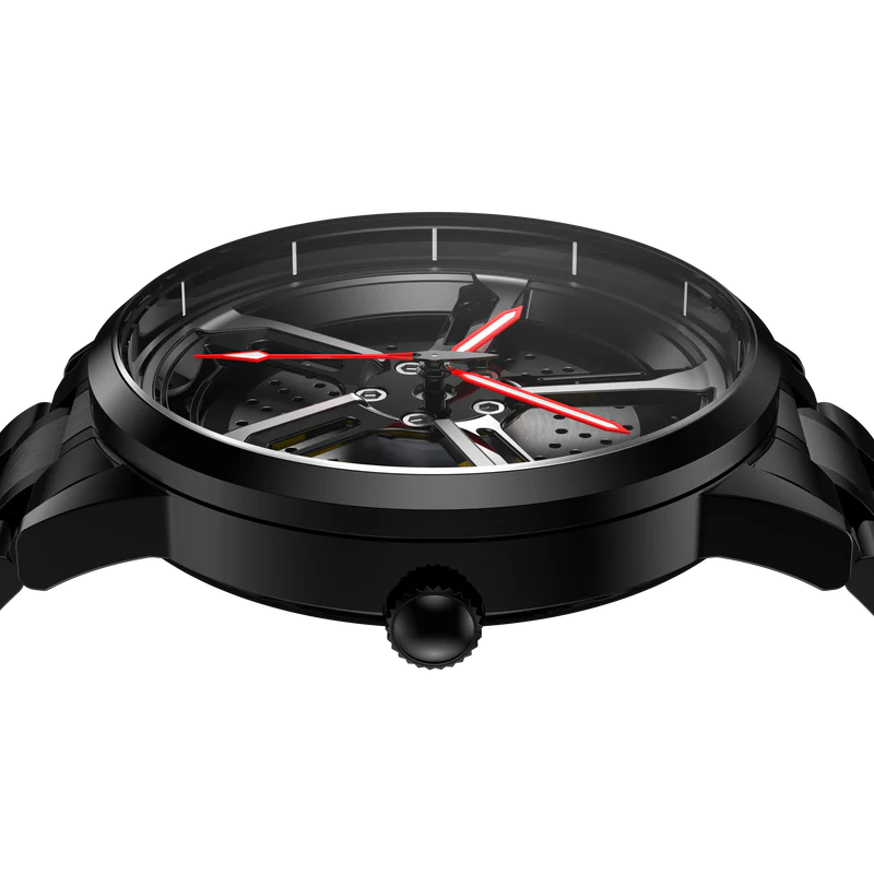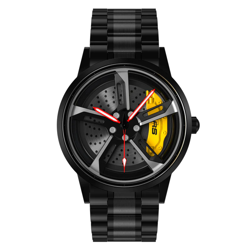 The dial, exemplifying superior design, reflects the detailed beauty of a car wheel. By flawlessly blending the rim into the watch face. Precision-engineered, this distinctive dial offers more than just the time – it resonates with the hearts of car enthusiasts worldwide.