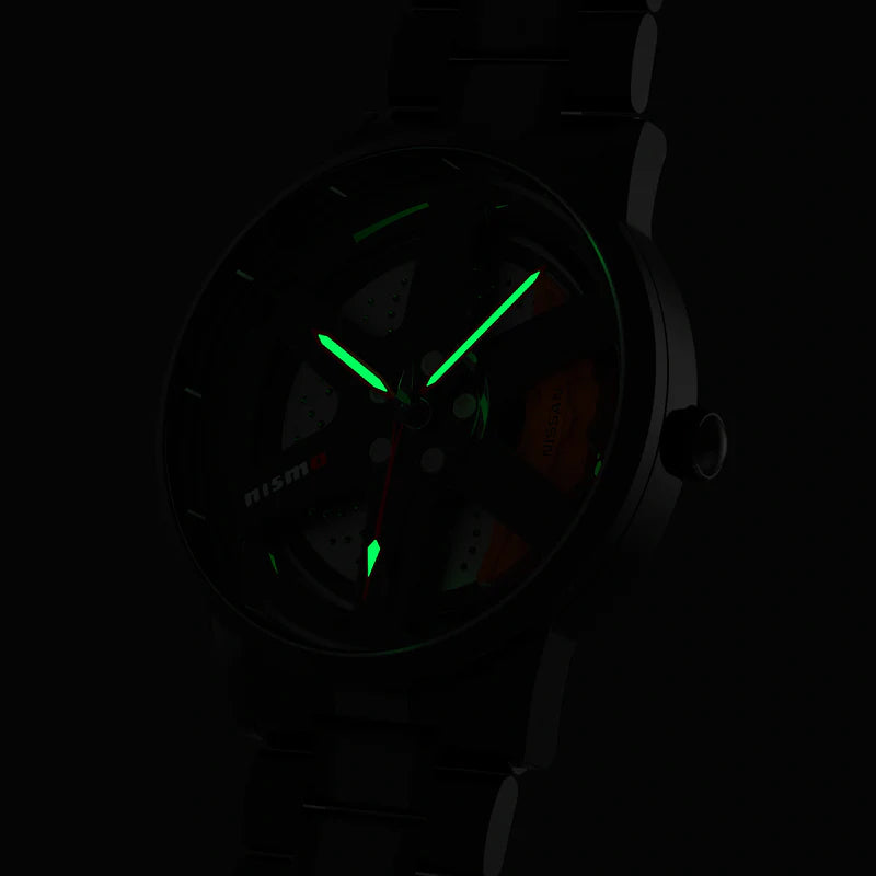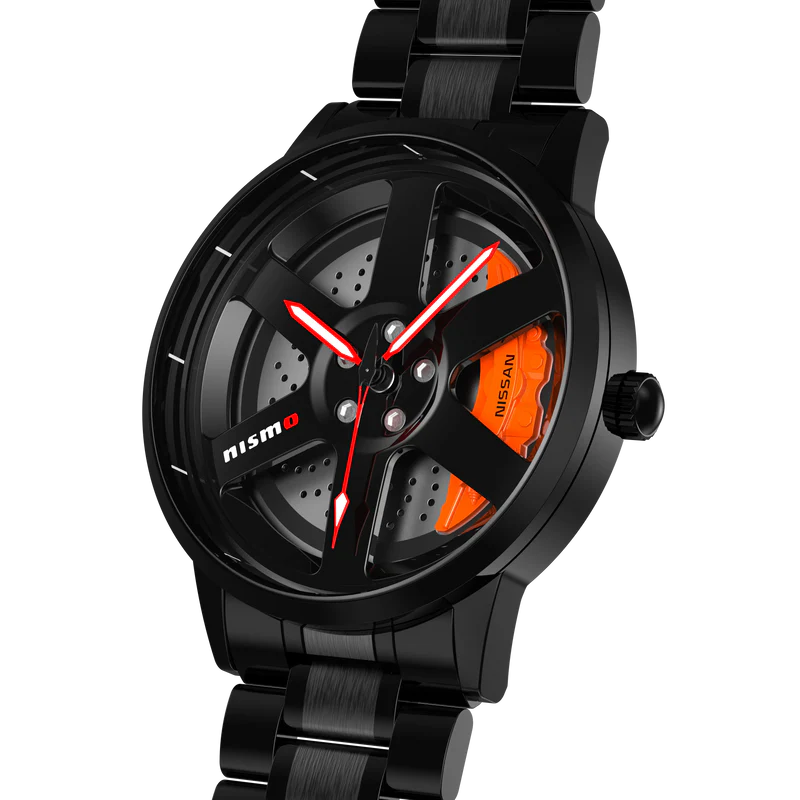The dial, exemplifying superior design, reflects the detailed beauty of a car wheel. By flawlessly blending the rim into the watch face. Precision-engineered, this distinctive dial offers more than just the time – it resonates with the hearts of car enthusiasts worldwide.